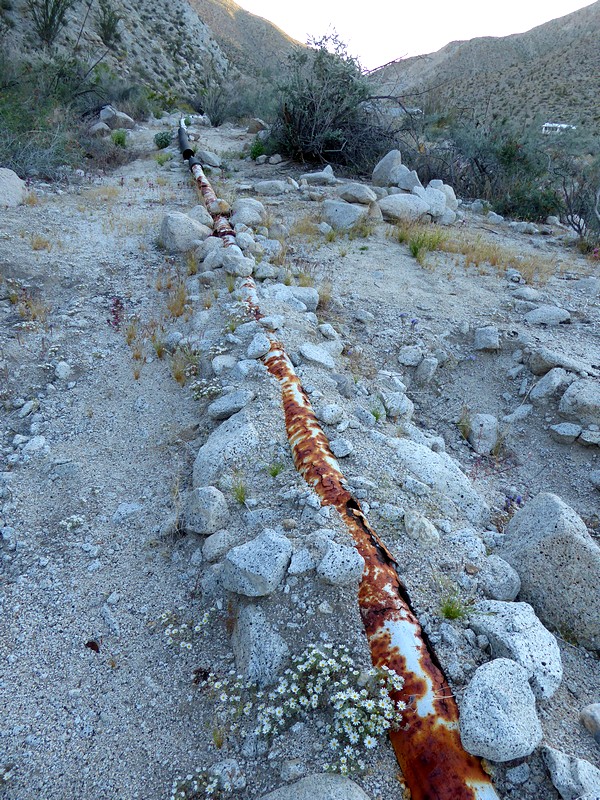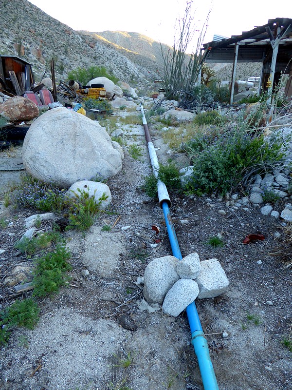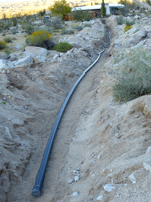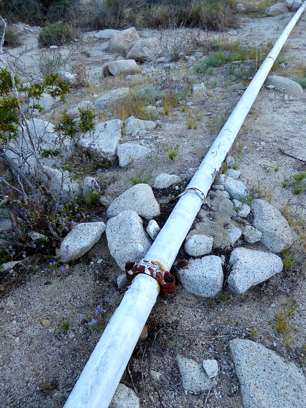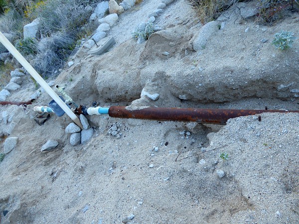 Jerry Bucheit, President of the Canebrake County Water District, Board of Supervisors, requested I take photos the new water pipe that was laying in a trench, ready to replace the present water pipe that is leaking regularly. I did as he requested. He wanted pictures of the new water pipe for the record. After taking photos of the new water pipe, I thought it might be helpful to continue up the line showing what the old pipe looked like. I continued up the pipe line, taking photos, until I filled up my chip. These are those photos. |