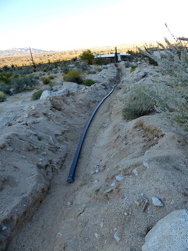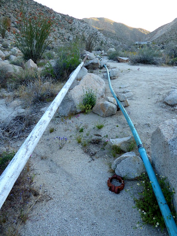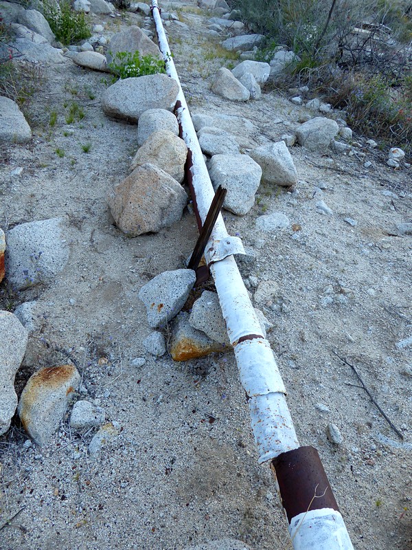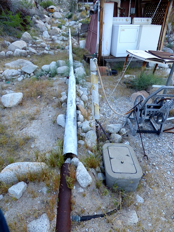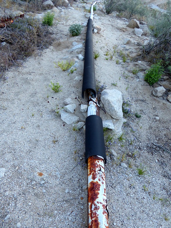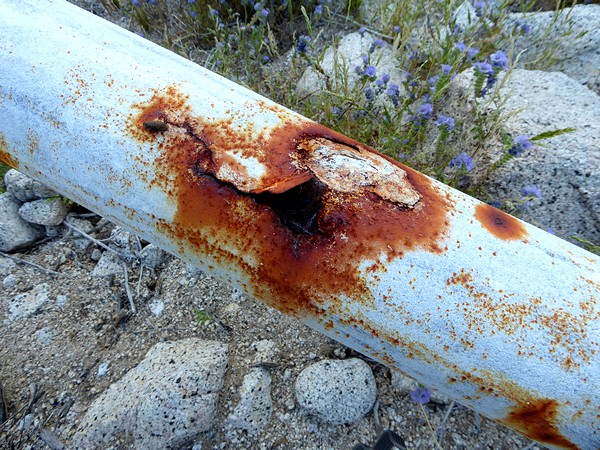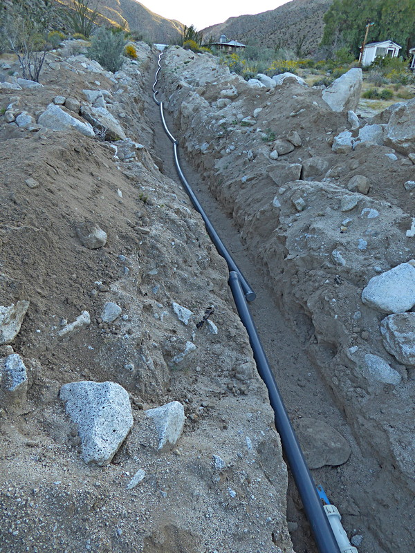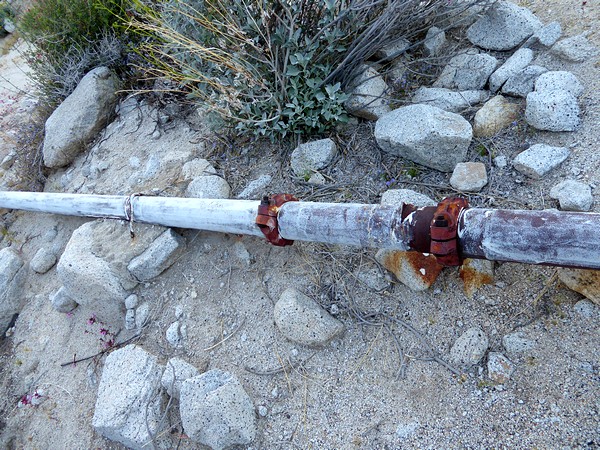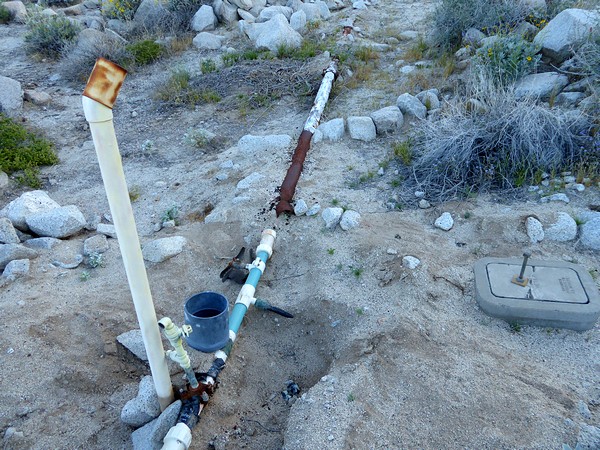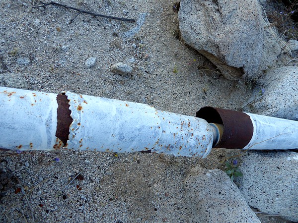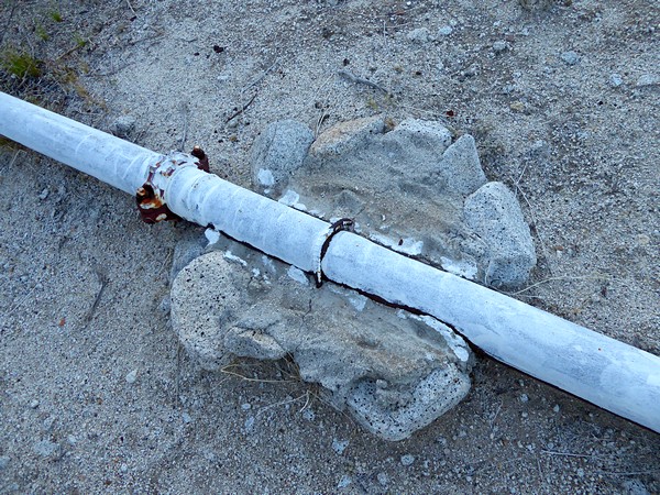 Jerry Bucheit, President of the Canebrake County Water District, Board of Supervisors, requested I take photos the new water pipe that was laying in a trench, ready to replace the present water pipe that is leaking regularly. I did as he requested. He wanted pictures of the new water pipe for the record. After taking photos of the new water pipe, I thought it might be helpful to continue up the line showing what the old pipe looked like. I continued up the pipe line, taking photos, until I filled up my chip. These are those photos. |
