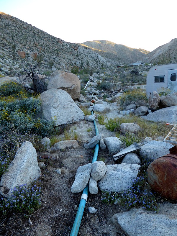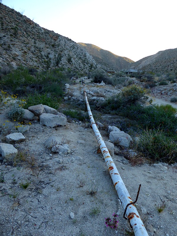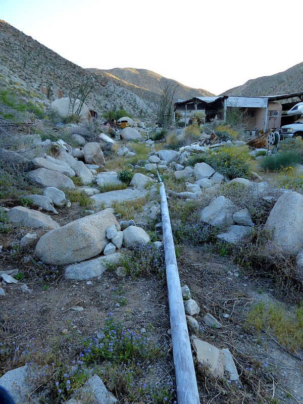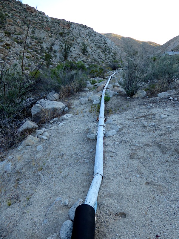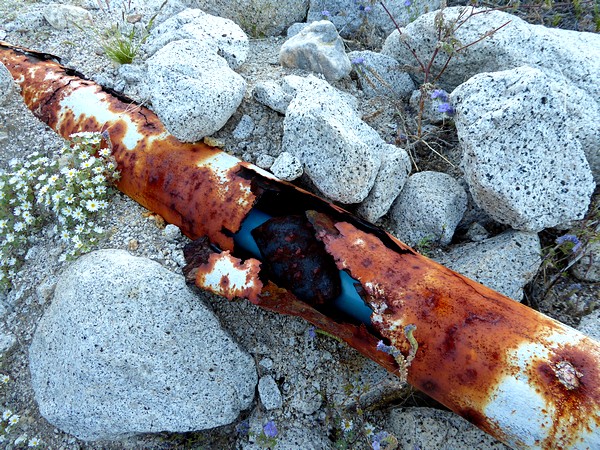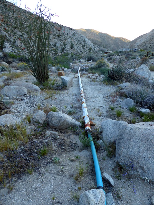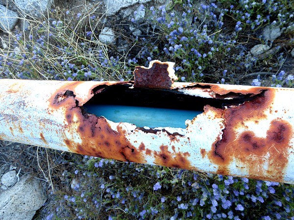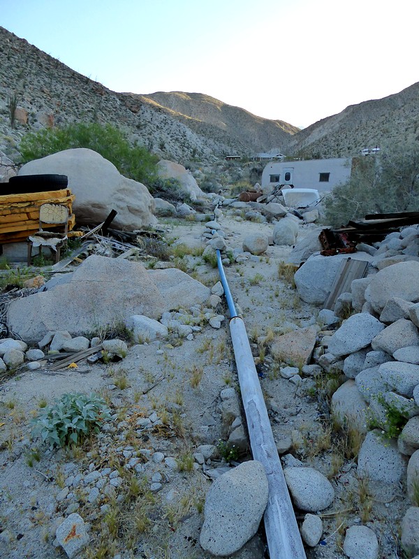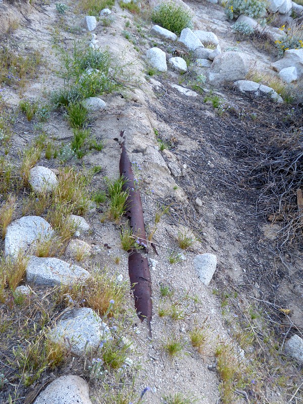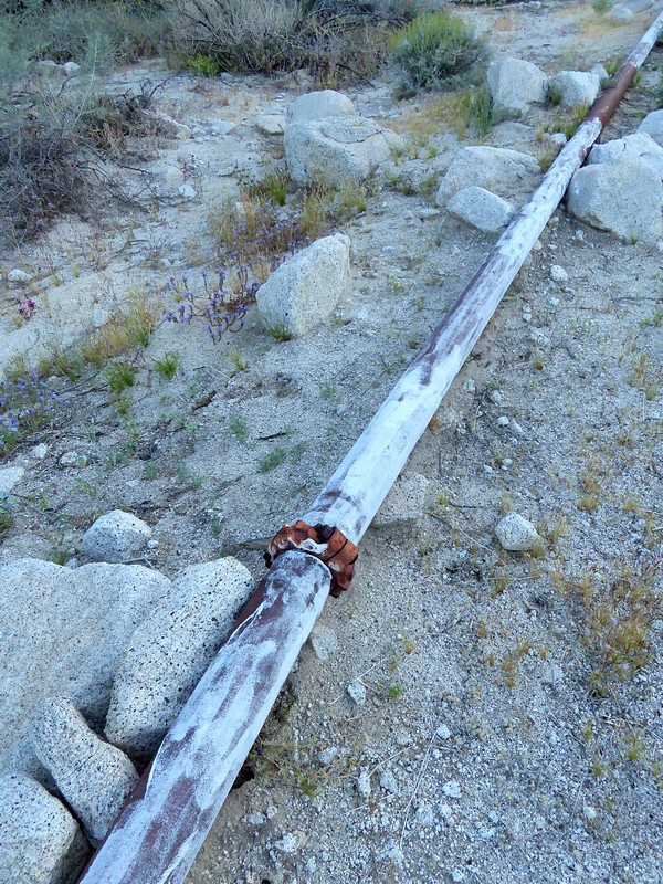 Jerry Bucheit, President of the Canebrake County Water District, Board of Supervisors, requested I take photos the new water pipe that was laying in a trench, ready to replace the present water pipe that is leaking regularly. I did as he requested. He wanted pictures of the new water pipe for the record. After taking photos of the new water pipe, I thought it might be helpful to continue up the line showing what the old pipe looked like. I continued up the pipe line, taking photos, until I filled up my chip. These are those photos. |