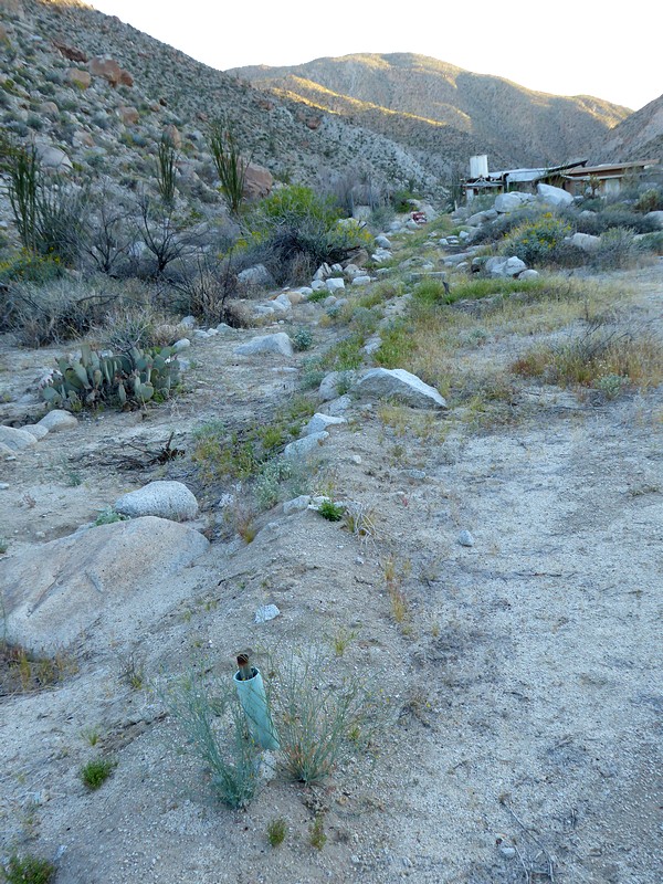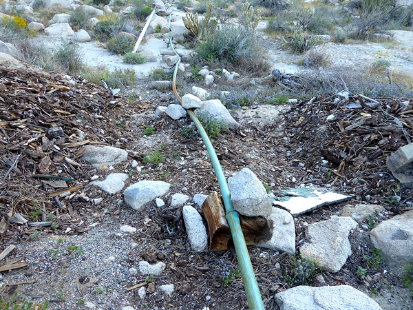 The next section of 3" pipe will be laid here. Brush must be cleared, rocks must be moved and the trench will be dug. This work will be done in the Fall when the weather has cooled. |